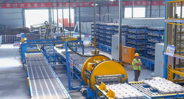 生產線分為混凝土布料區、自動升降上架區、智能溫控蒸養區、自動升降下架區、自動脫模區、機器人自動碼垛區、空模板回流循環區七大區域。生產線通過各項自動化設備及完整的生產流程,實現了流水線整體閉環,具有較大的經濟效益和良好的社會影響。